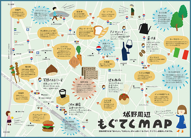 よしいさんにも協力してもらった城野周辺もぐてくMAP。城野団地の近くの飲食・ショップなどオススメスポットをご紹介。